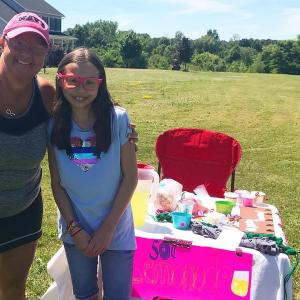 The second image is of a sweet girl named Bailey, a daughter of a women entrepreneur from my network, who was selling lemonade, homemade chocolate chip cookies and homemade crafts to earn money. Bailey was selling her items in a neighboring area so I jumped in my car and headed over to buy from her to prove that women support girls. I brought along a pink money bag that said “Girlboss” tucked inside was a pair of my company’s iconic pink glasses, that represent seeing ways to support women and girls. I also had $10 I was going to spend no matter what Bailey’s items cost; because I believe women need to monetarily support other women and girls.
