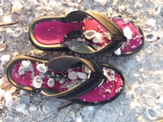 At the end of every blessed day, we walked down the beach a couple miles to view the sunset and give our legs one more workout before another day in paradise came to its end. There is nothing better than walking in the golden arms of the sun to a sky painted in soft hues of purple, orange and yellow in a Monet style. Our spirits and body enjoyed one last exercise walking in the sun kissed rays looking at the changing colors of the sky and picking up beautiful seashells to take home.