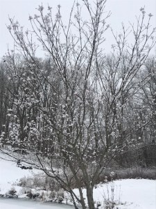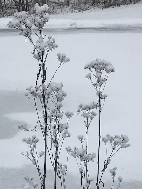 The senses have never been more alive. The stream from the pond was bubbling. A delicate bird sung a tune in the bushes. Summer wind charms dangling on a tree delighted the air. Every branch, pussy willow, craggy tree limb, and pine tree looked incredibly beautiful and pristine in the white fashion falling from the sky. It mesmerized me. Footstep after footstep I tried leaving the paradise of my backyard to go back up to the warm house, lit with orange flames, smelling of a stew I was able to muster up for dinner but I was entranced and in awe of nature giving me the medicine I needed most, beauty.
