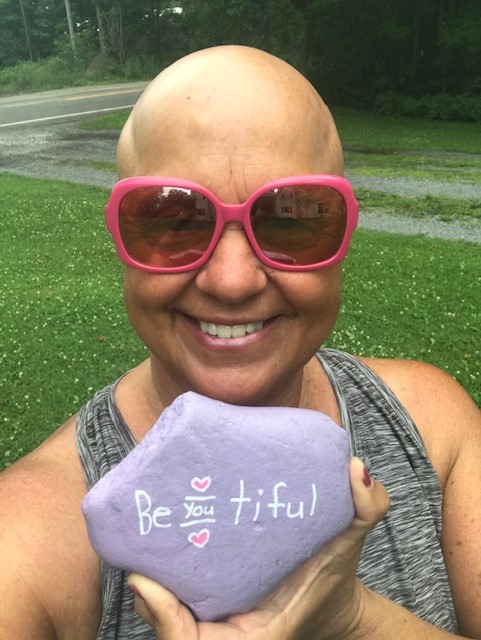 This light purple rock had two pink hearts on it and the words “Be- YOU-tiful”. Since I was biking bald, my latest way to accept my alopecia and total baldness as a 56-year-old woman who once had gorgeous dark flowing hair, eyebrows, and eyelashes, and where I tell people I feel the most like myself – carefree with pink glasses on – an image of my dad whispering from above, “Be you, Tracy, it is enough,” vibrated in my heart. I felt him all the way from above, 15 years later from when he left my side, exactly when I needed to hear it.