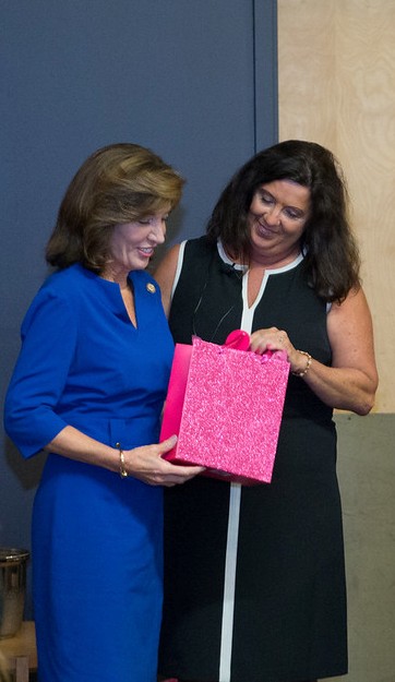 Since the Lt. Governor of New York State Kathy Hochul was the chairwoman of New York’s State’s Commission to plan and execute programs in 2017, which marked the 100th anniversary of women’s suffrage in New York State, I was invited to attend different suffrage celebratory conferences and events to help promote event news with my feminist followers. Saying “yes” to those invitations, opened the door for me to get to listen to and meet Kathy Hochul multiple times which led to me asking her to be the keynote speaker at our annual conference for women entrepreneurs on September 27, 2017.