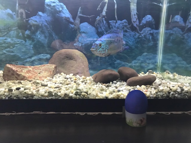 My “partner-in-crime” in business, the past five years has been a brilliant blue cichlid named……wait for it….”Blue,” my youngest son’s first pet that accompanied him his last year at Syracuse University. At times, Blue’s tank had accidental vodka and beer poured into it by drunken fraternity brothers of my son, but he survived in the college atmosphere. Maybe he thrived on my son’s love for him.