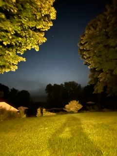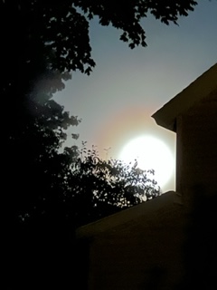 The darkness of the sky, only lit by a full moon with a rainbow circle around it, most likely thanks to Eliza watching from above, along with the cool September, dewy breeze, awakened my senses. Living on a country road without lights, I couldn’t run on my road, but my very large deck built into our hill surrounding our pool, was a better choice than running on my treadmill. I wanted to be in the elements just like she was.