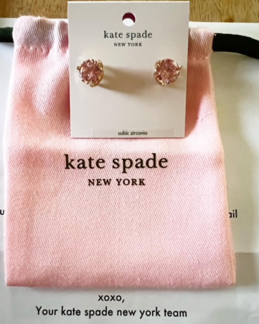 “Surprise!” was on top of the Kate Spade letterhead accompanied by bright pink earrings and pink earring pouch. Still thinking someone who knows I wear pink to represent women sent it to me, I kept reading the letter which said, “Thank you for shopping with us. xoxo Your Kate Spade New York Team.” I thought silently to myself, did the company actually send me this beautiful gift?