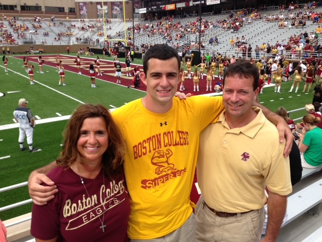 It wasn’t as hard as I thought it would be, running up Heartbreak Hill, around the 20-mile mark in the historic race. The sun was shining, my legs were still strong, and there was Boston College, my son’s beloved university, where I visited him numerous times over a four year period, beaming at the top. At the bottom of the hill someone handed me a construction letter “F” and told me to “Get the F Up the Hill!” – a small joke to keep my mind off the long hill and 6.2 miles to go.
