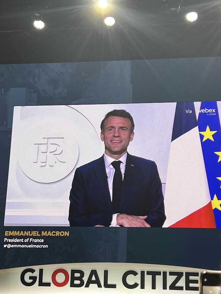 I’m trying to choose the proper descriptions to paint a picture and soundtrack of all the information that was shared so passionately by thirty speakers including the President of France Emmanuel Macron who appeared live on a screen from his country sharing with the audience goals on climate change, poverty, and support of less rich countries to help them make a difference in urgent global needs. He didn’t have to be in person to understand his commitment to the event and its purpose.