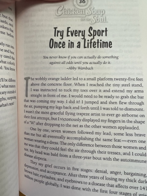 When I heard my story was accepted into the popular Chicken Soup for the Soul’s latest edition, “Get Out of Your Comfort Zone,” I had to proof the story and the quote the publisher randomly chose to headline my story. They chose a quote by Rocky – the film persona played by Sylvester Stallone. I wrote back saying, “Since this is a story of a real-life woman trying sports, why can’t we have a quote from a real-life female athlete instead?” They responded positively so I chose Abby Wambach because of her Upstate New York ties and success.
