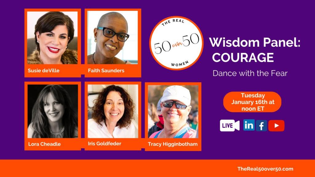Next Tuesday, I am fortunate to be a part of a panel of national women over 50 sharing our stories and insights on courage. I invite you to attend the free Zoom event especially if you don’t feel like you are as brave as you want to be. The intention is for you to walk away realizing you are braver than you think or inspired to become more courageous in 2024.