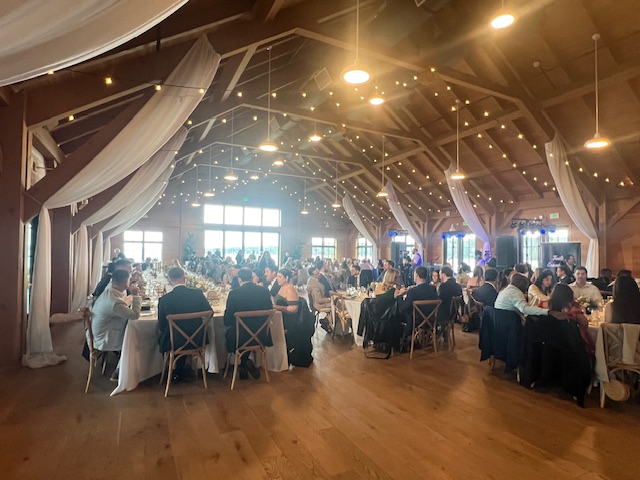 As musically as the waitstaff decorated the tables, the 8-person band set up and tuned its instruments for the celebratory part of the reception. Every note was perfected, the volume adjusted, the voices rehearsed, and the space was overcome with musical splendor.