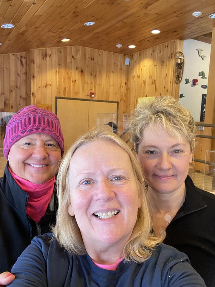 As a child of ski shop owners and ski instructors, gliding on snow in downhill or cross country skis were easy for me, and for one other woman, Jennifer, who cross country skis a lot, but for one woman, Janet, with brand new skis, it was a first time attempt on slightly ice and cold conditions.